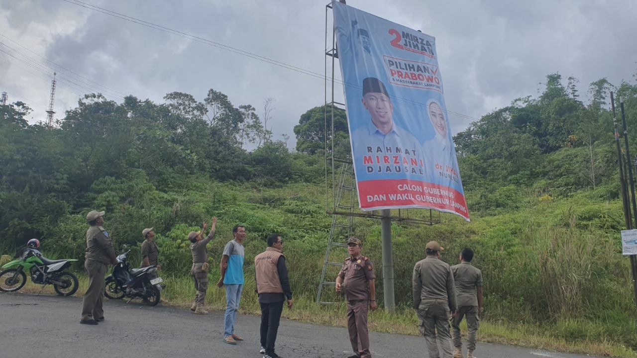 Tim gabungan ini terjun langsung ke berbagai titik strategis di pusat Kabupaten Lampung Barat dan area publik lainnya untuk membersihkan APK yang masih dipasang, baik di jalan raya, tempat umum, maupun di lokasi yang berdekatan dengan fasilitas publik.