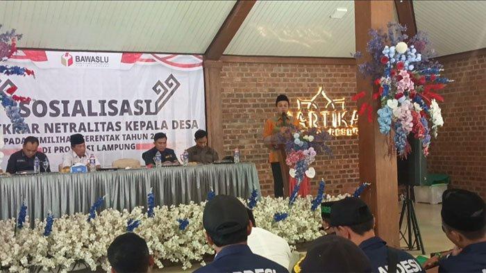 Pesisir Barat, Penacakrawala.id – Bawaslu Provinsi Lampung gelar sosialisasi dan ikrar netralitas Peratin (kepala desa) di Hotel Sartika, Kecamatan Pesisir Tengah, Pesisir Barat, Lampung, Kamis (26/9/2024).