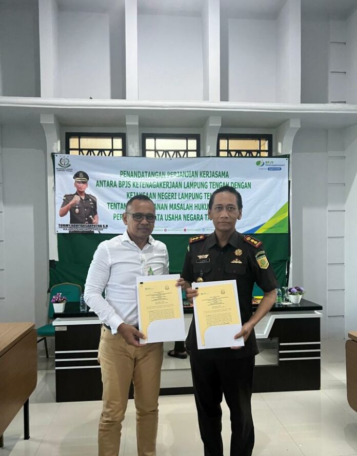 Lampung Tengah, Penacakrawala.id – BPJS Ketenagakerjaan Lampung Tengah menjalin Perjanjian Kerja Sama (PKS) dengan Kejaksaan Negeri (Kejari) Kabupaten Lampung Tengah di Kantor Kejari Kabupaten Lampung Tengah, Rabu, 13/11/2024.