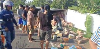 Sebuah Truk Bermuatan Sembako Terguling Di Sidomulyo Lamsel