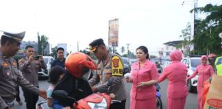 Polres Lampung Utara Membagikan Takjil Bagi Para Pengguna Kendaraan Yang Melintas