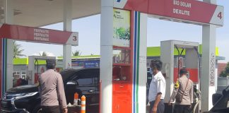 Puluhan Personil Polres Pringsewu Lakukan Patroli Pengawasan di SPBU