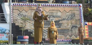 Perdana, Bunda Dewi Pimpin Apel Pemkab Tanggamus