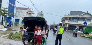 Polisi Tilang Mobil Bak Pengangkut Anak Sekolah di Pesibar