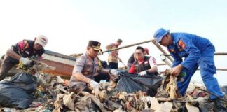 Polresta Bandar Lampung Kumpulkan 10 Ton Sampah Pantai Sukaraja