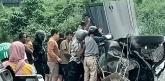 Mobil Toyota Rush Kecelakaan Menabrak Tiang Lampung Jalan