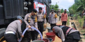 Polisi Metro Distribusikan Air Bersih Ke Daerah Terdampak Kemarau