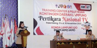 Ketua Kwarda Pramuka Chusnunia Chalim, Lepas Kontingen Pramuka Lampung ke Perkemahan...