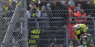 Valentino Rossi Memberikan Helm Ke Pendukungnya Dalam Balapan Kandang Terakhir Di...