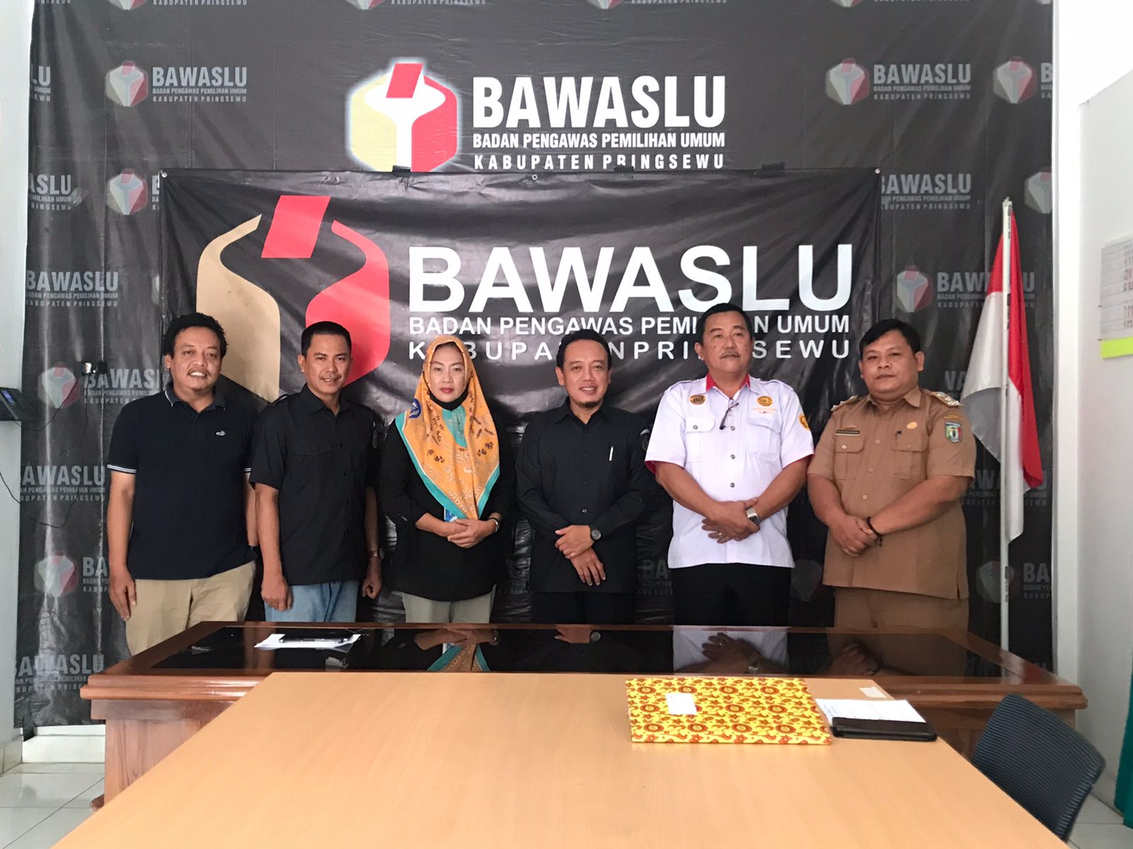 Di sambut ramah oleh ketua BAWASLU Pringsewu M.Fathul Arifin, M.Pd, Adam Malik,S.HI, bidang Hukum, M.Samsir, S.Pd.I, Koordinator Sekretaris, Fajar Fakhlevi S.Pd, Anggota dan Muhammad Escha Adesha S.KM, Staff BAWASLU,