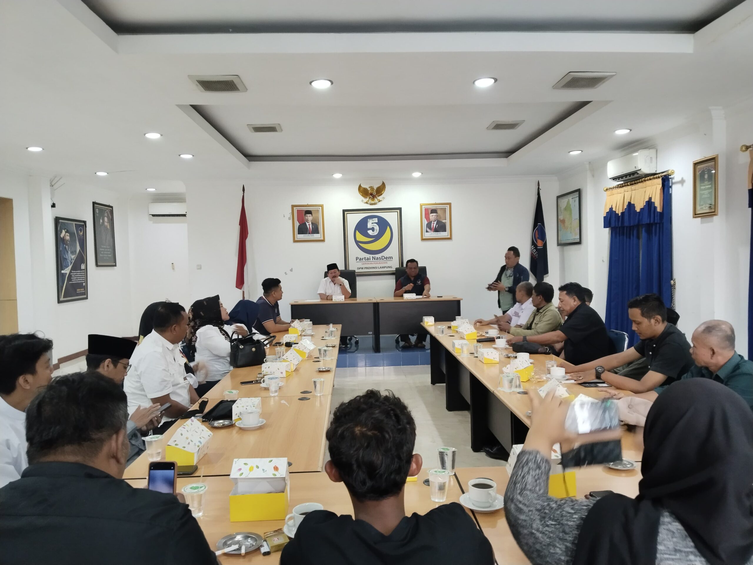 Bandar Lampung, Penacakrawala.id – Menjelang Pilkada serentak Forum Orkestra Desk Pilkada sambangi kandidat dari partai Nasdem Herman HN guna mendengar gagasan dan ide yang dibawa untuk membangun Provinsi Lampung 5 tahun kedepan.