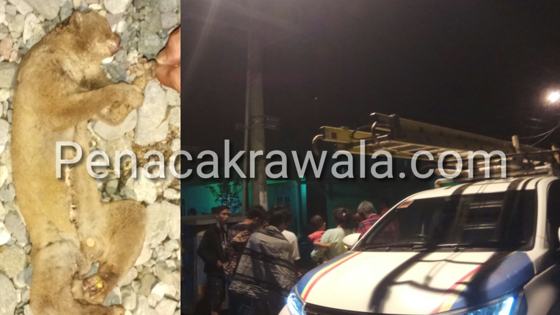 Akibat tersengat arus listrik, seekor musang terbakar di bagian depan badan menimbulkan kematian.