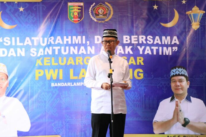 Bandar Lampung, Penacakrawala.com – Gubernur Lampung diwakili oleh Sekretaris Daerah Provinsi Lampung, Fahrizal Darminto, menghadiri acara Doa Bersama sekaligus Pemberian Santunan bagi Anak Yatim yang dilaksanakan PWI Provinsi Lampung, bertempat di Balai Wartawan H. Solfian PWI Provinsi Lampung, Kamis (13/04/2023).