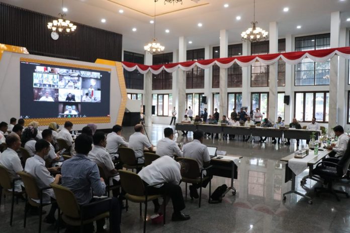 Bandar Lampung, Penacakrawala.com – Usai mengikuti Rapat Koordinasi Pengendalian Inflasi Daerah bersama Mendagri, Gubernur Lampung Arinal Djunaidi segera menindaklanjuti dengan menggelar Rapat Koordinasi Pengendalian Inflasi Daerah bersama Forkopimda dan Pemerintah Kabupaten/Kota se-Provinsi Lampung secara daring di Mahan Agung, Rabu (08/02/2023).
