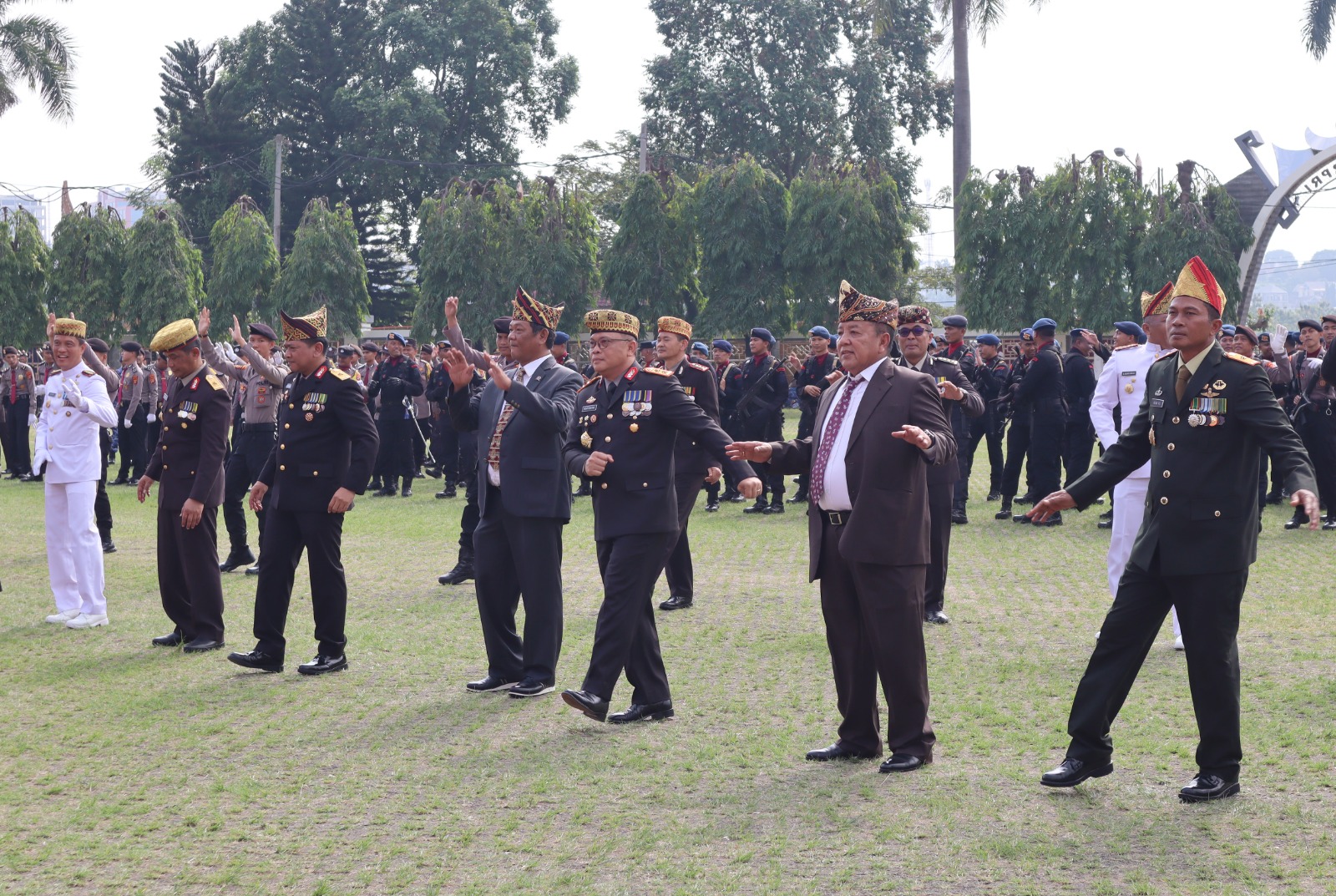Terakhir, Gubernur dan jajaran Forkopimda melakukan Senam Pang Lipang Dang bersama dengan seluruh peserta upacara. (adv)