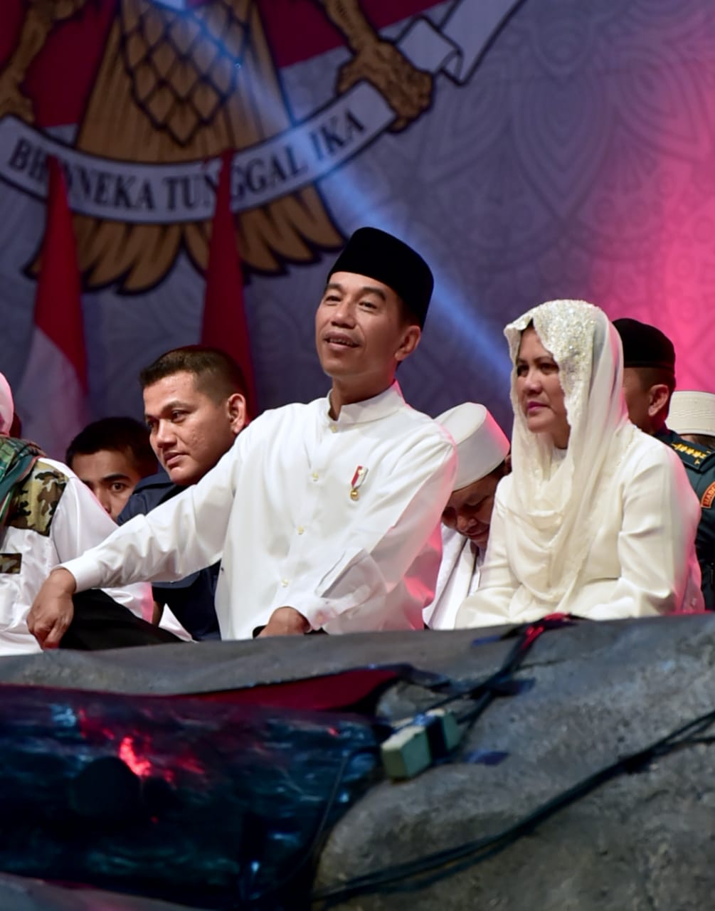Jawa Barat, BITV – Presiden Joko Widodo dan Ibu Negara Iriana Joko Widodo menghadiri acara peringatan Maulid Nabi Besar Muhammad SAW dan Haul Syekh Abdul Qodir Al Jailani, di Pondok Pesantren Al Baghdadi, Rengasdengklok, Karawang, Jawa Barat pada Sabtu, 19 Januari 2019.