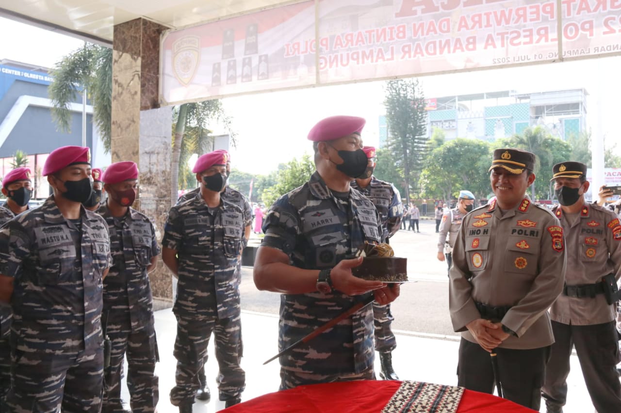 Bandar Lampung, Penacakrawala, Com – Dalam rangka memperingati Hari Bhayangkara HUT ke 76 tahun 2022, Brigif 4 Marinir/BS – Bandar Lampung. Komandan Brigade Infanteri (Danbrigif) 4 Marinir/BS Kolonel Marinir Harry Indarto mendatangi Markas Kepolisian Resort Kota (Mapolresta) Bandar Lampung di Jl. Mayjen MT Haryono, Gotong Royong, Kecamatan Tanjung Karang Pusat, Kota Bandar Lampung, Provinsi Lampung.