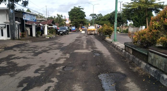 Beberapa titik aspal kembali terkelupas dan berlubang. Kondisi ini cukup menjadi keluhan pengendara yang melintas di jalan itu.