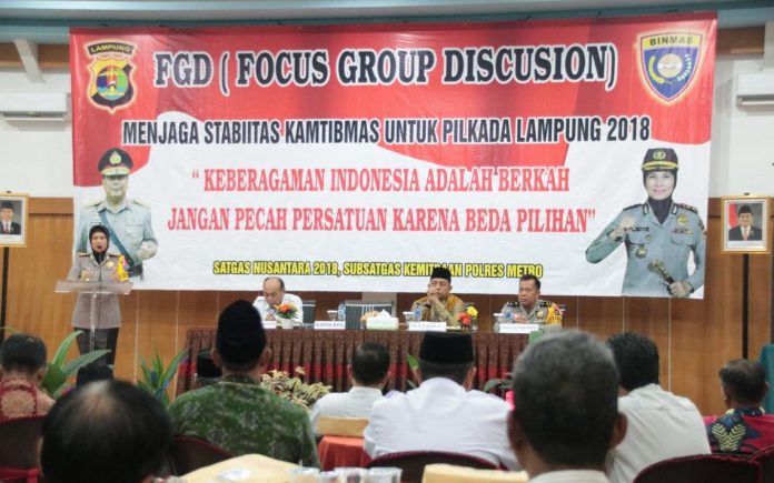 Metro, buanainformasi.com – Dalam rangka berjalannya Pilkada serentak di tahun 2018, Polres Metro mengadakan Focus Group Discussioan (FGD) dalam menjaga stabilitas kamtibmas untuk Pilkada Lampugn 2018 bersama Forkopimda Metro, Rabu (02/05/18).