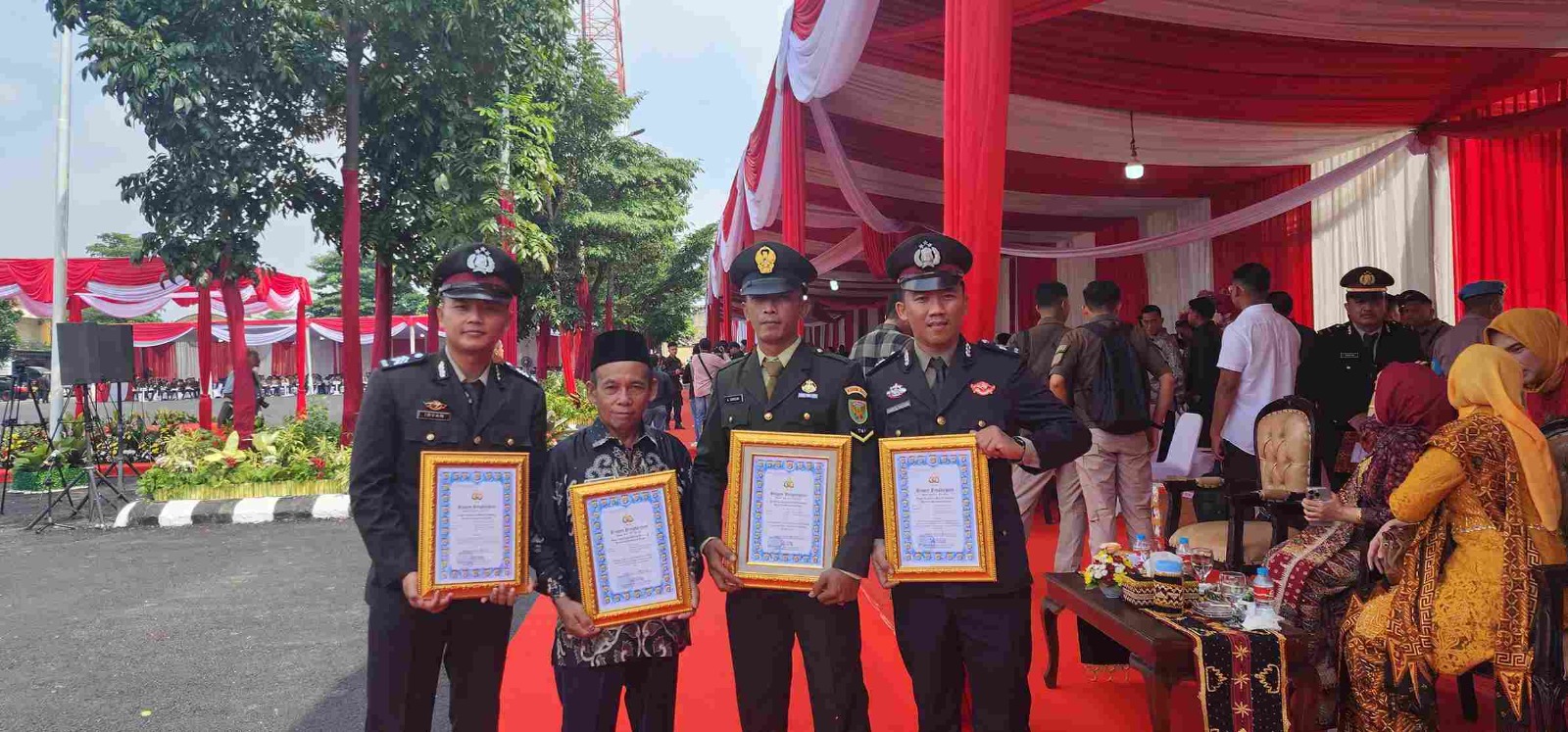 Kasat Binmas Polres Tulang Bawang Barat IPTU Gutri mewakili Kapolres Tulang Bawang Barat AKBP Ndaru Istimawan, S.I.K, Menjelaskan Bahwa Penghargaan ini diberikan pimpinan Kepolisian daerah Lampung (Kapolda) kepada para personel Polri/TNI yang berdinas di Polres Tubaba, Polsek Tuba Tengah, Koramil Tuba Tengah dan Masyarakat Tiyuh Mulya Kencana untuk terus mendedikasikan diri melayani dan mengayomi masyarakat.