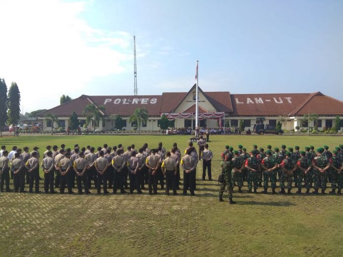 AKBP Eka Mulyana selaku Kapolres Lampung Utara (Lampura) memimpin langsung apel tiga pilar Kamtibmas di lapangan Mapolres setempat, Rabu (30/5/2018).