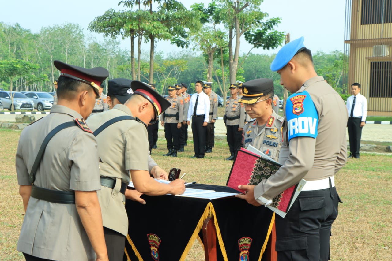 Upacara pelantikan jabatan Kabag SDM, Kasat Binmas dan Kasiwas Polres Tulang Bawang Barat berdasarkan keputusan Kapolda Lampung No. ST/805/X/KEP/2023 tanggal 31 Oktober 2023 sebagai berikut :