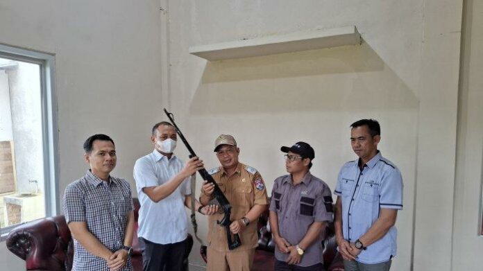 Adapun senjata api tersebut terdiri dari sepucuk laras pendek jenis Revolver tanpa amunisi dan sepucuk senjata api laras panjang tanpa amunisi.