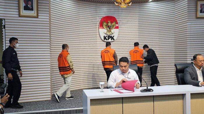Mereka ditahan usai menjalani pemeriksaan sebagai tersangka kasus dugaan suap terkait proyek DJKA Kemenhub pada hari ini di Gedung Merah Putih KPK di Jakarta.