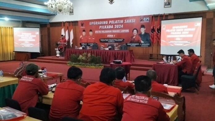 Bandar Lampung, Penacakrawala.id – DPD Partai Demokrasi Indonesia Perjuangan (PDIP) Provinsi Lampung, melakukan upgrading terhadap 124 pelatih saksi Pilkada Lampung 2024, Sabtu (19/10/2024).