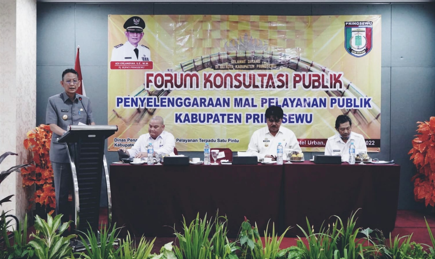 Sementara Pemkab Pringsewu menggelar forum konsultasi publik dalam rangka pembentukan dan penyelenggaraan mal pelayanan publik (MPP) di Hotel Urban Pringsewu, Rabu 9 November 2022. Kegiatan dibuka Pj. Bupati Pringsewu Adi Erlansyah.