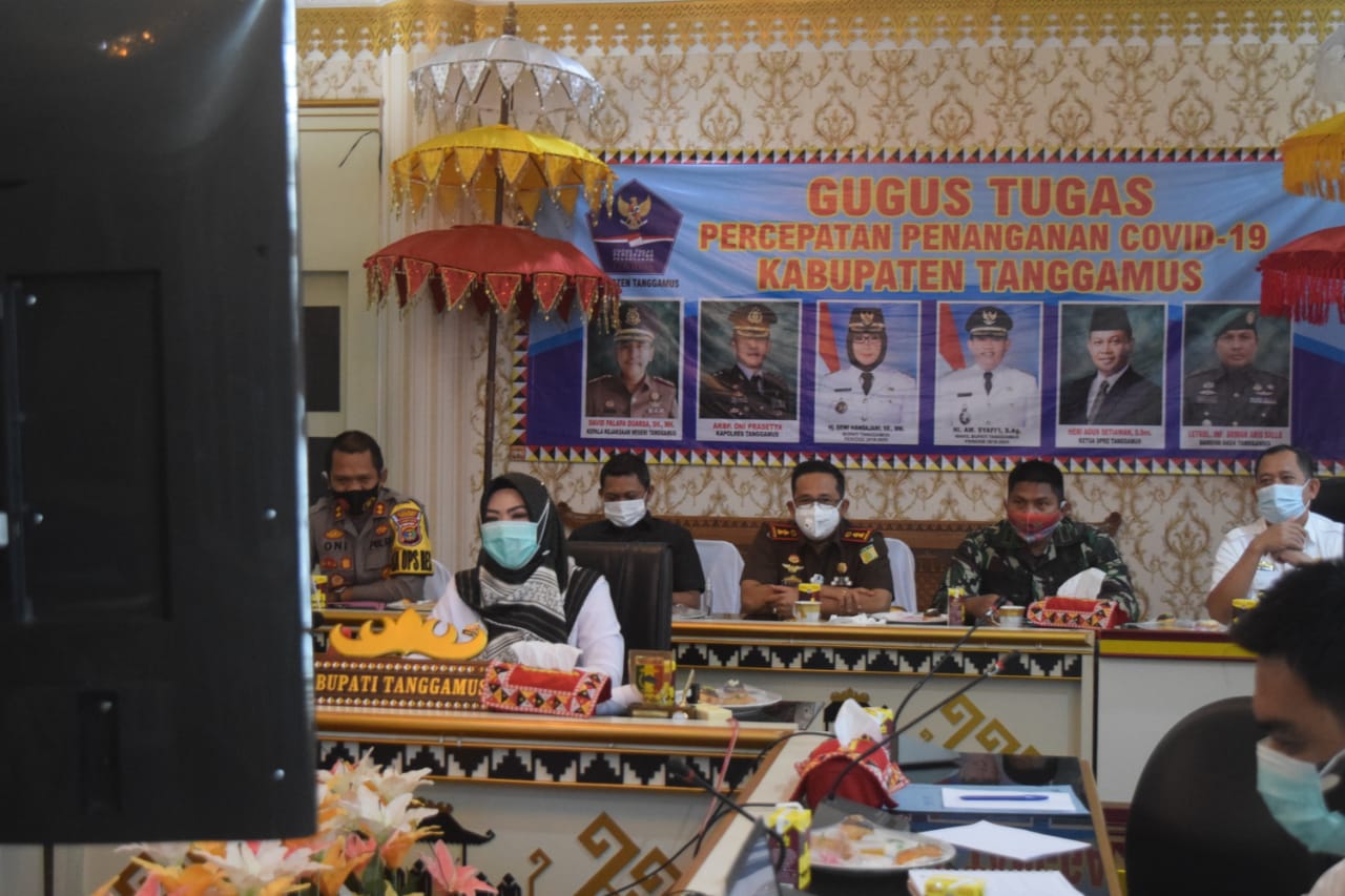 Sementara Bupati Hj. Dewi Handajani, usai pelaksanaan video conference menghimbau agar masyarakat Tanggamus dapat menahan diri dan tidak ikut melakukan demonstrasi menolak UU Cipta Kerja. Karena dikhawatirkan akan melanggar protokol kesehatan, serta untuk menghindari penularan Covid 19.