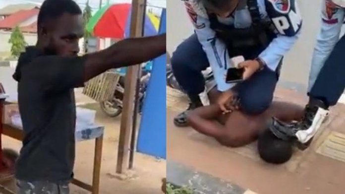Kepada pemuda tunarungu itu, disodorkan bungkusan plastik hitam. Pemuda itu merespons dengan memukul tangan yang memberikan bungkusan. Tak lama, muncul laki-laki lain yang mencoba menahan pemuda itu karena terlihat marah. Dalam informasi beredar disebutkan pemuda itu melakukan pemerasan kepada penjual bubur ayam dan pelanggan dengan cara meminta uang dan menarik narik tangan.