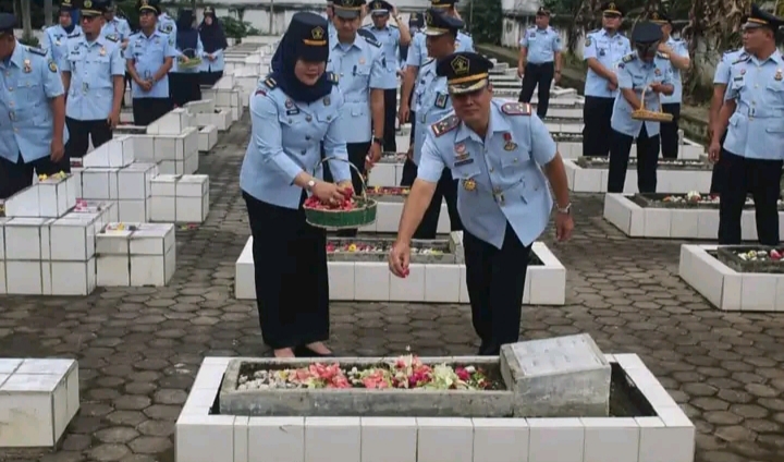 Lubuklinggau, Penacakrawala.com – Masih dalam rangkaian peringatan Hari Bhakti Kementerian ke- 78, Lapas Lubuklinggau Kanwil Kemenkumham Sumsel melaksanakan kegiatan upacara untuk mengenang para jasa pahlawan yang dilanjutkan dengan Ziarah dan tabur bunga di Taman Makam Pahlawan (TMP) Satria Bukit Sulap Kota Lubuklinggau, Rabu (9/8/2023).