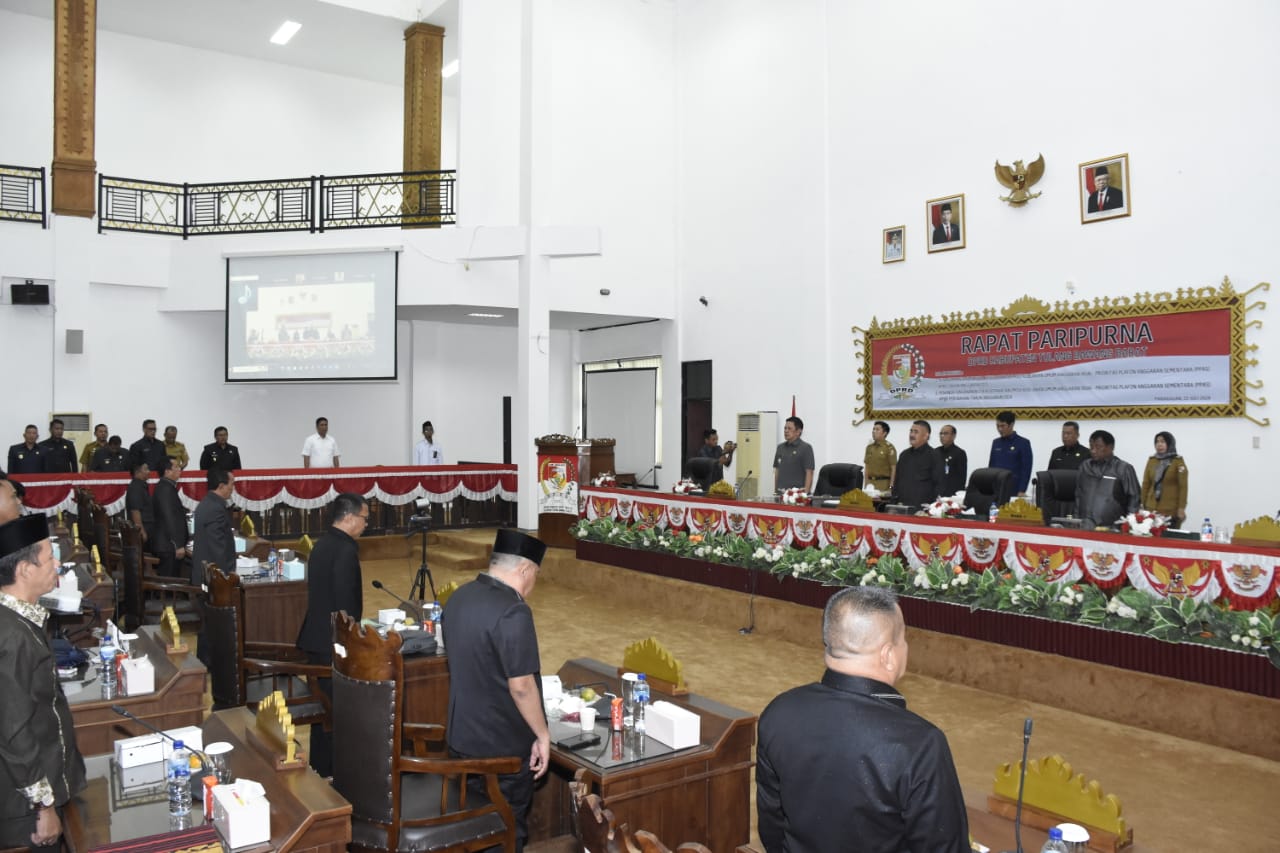 Penandatanganan tersebut dilaksanakan disela rapat paripurna DPRD Tubaba, Senin (22/07/2024). Turut hadir secara langsung Pj. Bupati, Jajaran Forkopimda, Kepala OPD, Camat, serta tamu undangan lainnya.