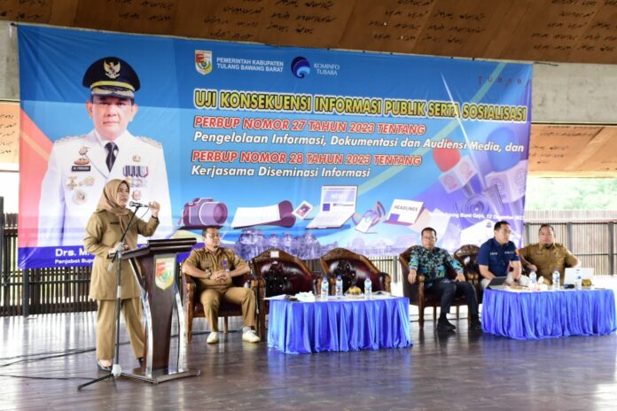 Tubaba, Penacakrawala.com – Penjabat (Pj) Bupati Tulang Bawang Barat (Tubaba), Drs. M Firsada, M.Si., diwakili Asisten Bidang Pemerintahan dan Kesejahteraan Rakyat Kabupaten Tubaba Dra. Bayana,M.Si., Membuka acara Uji Konsekuensi Informasi Publik Serta Sosialisasi Peraturan Bupati (Perbup) No 27 Tahun 2023 tentang Pengelolaan Informasi, Dokumentasi dan Audensi Media dan Perbup Nomor 28 Tahun 2023 Tentang Kerja Sama Dimensi Informasi.