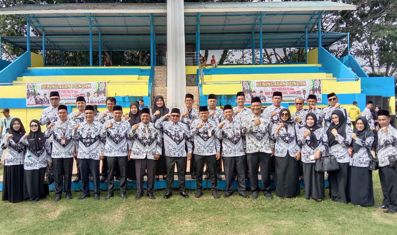 Terimakasih kepada semua peserta upacara yang hadir baik perguruan tinggi, SMA,SD SMP dan seluruh petugas upacara yang melaksanakan upacara di pagi hari ini dengan tertib hikmat dan insya Allah mempunyai makna yang dalam bagi kita di hari guru dan hari PGRI ke-78 ini,”pungkasnya. (**/ari)