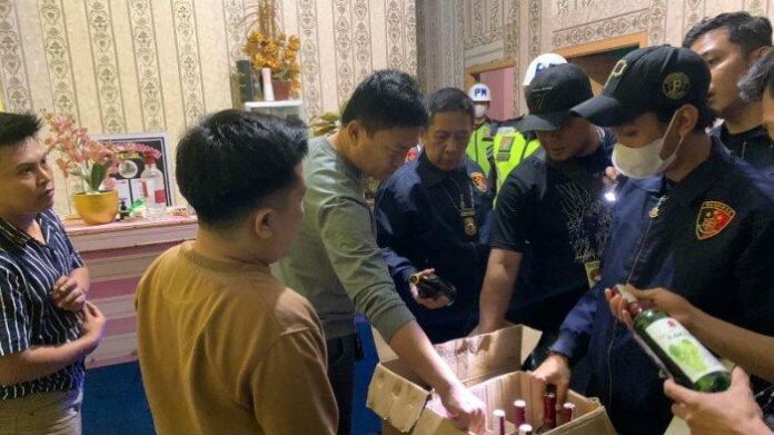 Petugas juga melakukan pemeriksaan terhadap perizinan peredaran minuman keras (miras) di dalam tempat hiburan malam tersebut.