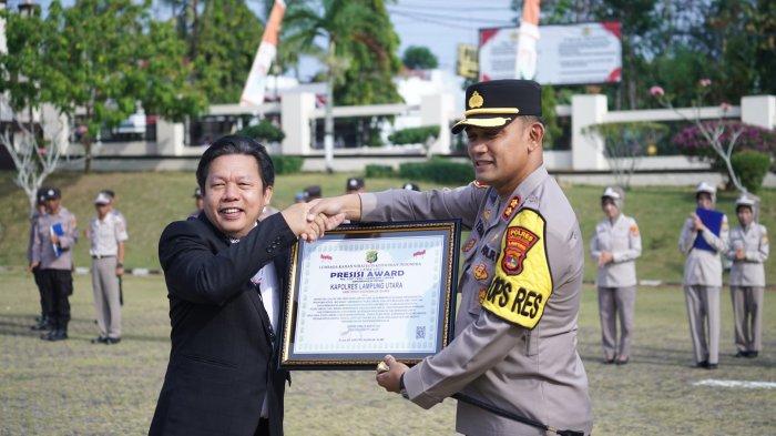 Pemberian penghargaan tersebut diberikan secara langsung oleh Direktur Eksekutif Lemkapi, Dr. Drs. Edi Saputra Hasibuan, S.H, M.H, di Lapangan Mapolres Lampung Utara, Polda Lampung.