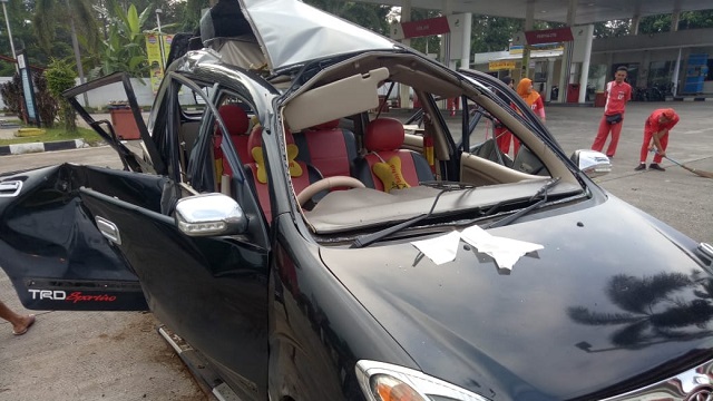 Akibat ledakan mengakibatkan mobil ringsek disemua sisi, bahkan sopirnya Malansyah warga Pekon Rajabasa Kecamatan Bandar Negeri Semuong (BNS) Tanggamus harus dilarikan kerumah sakit. Beruntung pegawai SPBU segera memadamkan percikan api sehingga mobil tidak terbakar.