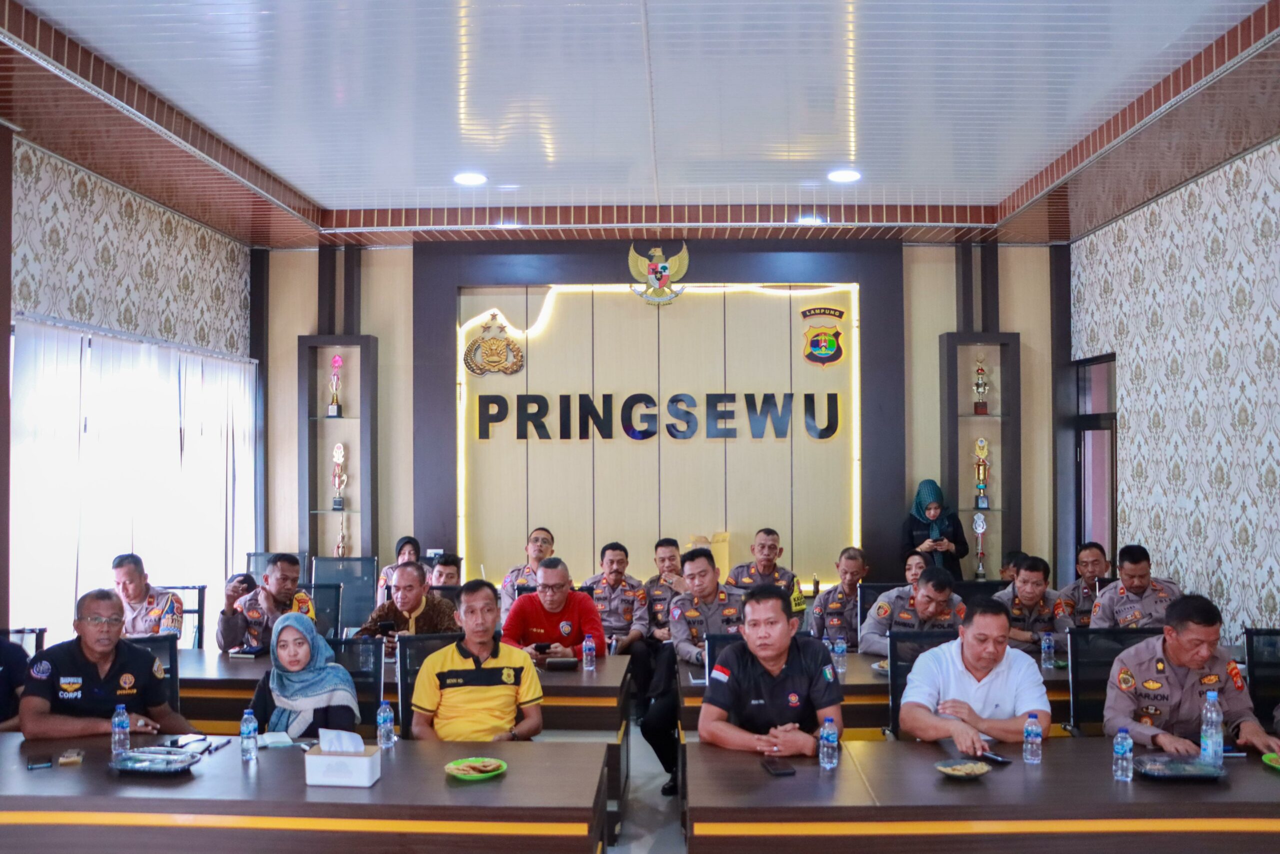 Rapat yang diadakan di aula Mapolres Pringsewu pada JUmat (17/5) ini dipimpin oleh Kapolres Pringsewu, AKBP Benny Prasetya, dan dihadiri oleh jajarannya serta perwakilan dari TNI, Dinas Perhubungan, Satpol-PP, dan Dinas Kesehatan setempat.
