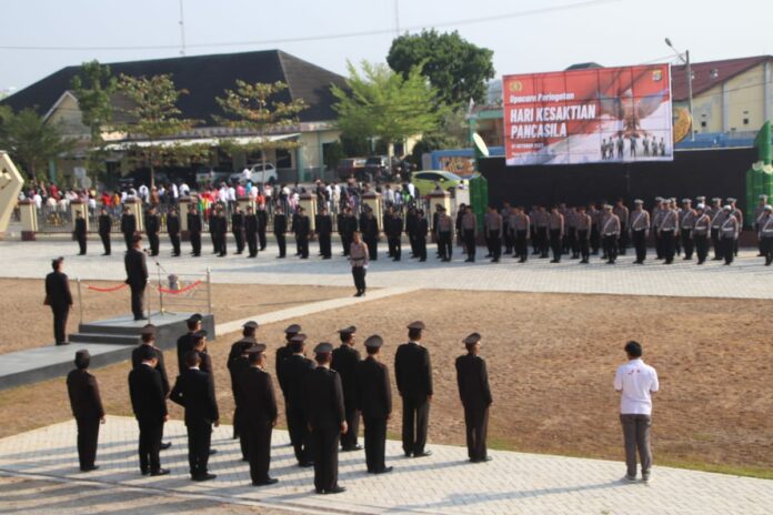 Upacara dengan tema “Pancasila Pemersatu Bangsa Menuju Indonesia Maju” dimulai pukul 07.30 WIB dan diikuti dengan khidmat oleh seluruh personel Polri dan ASN Polres Pringsewu.