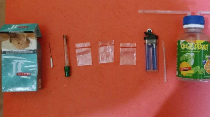 Dari lokasi penangkapan petugas menyita barang bukti (BB) berupa tiga bungkus plastik klip berisi narkotika jenis sabu dengan berat bruto 0,30 gram, kaca pyrex yang masih ada sisa pakai sabu, korek api gas, pipet, sumbu gas korek api, kotak rokok merek JF mild, dan alat hisap sabu (bong).