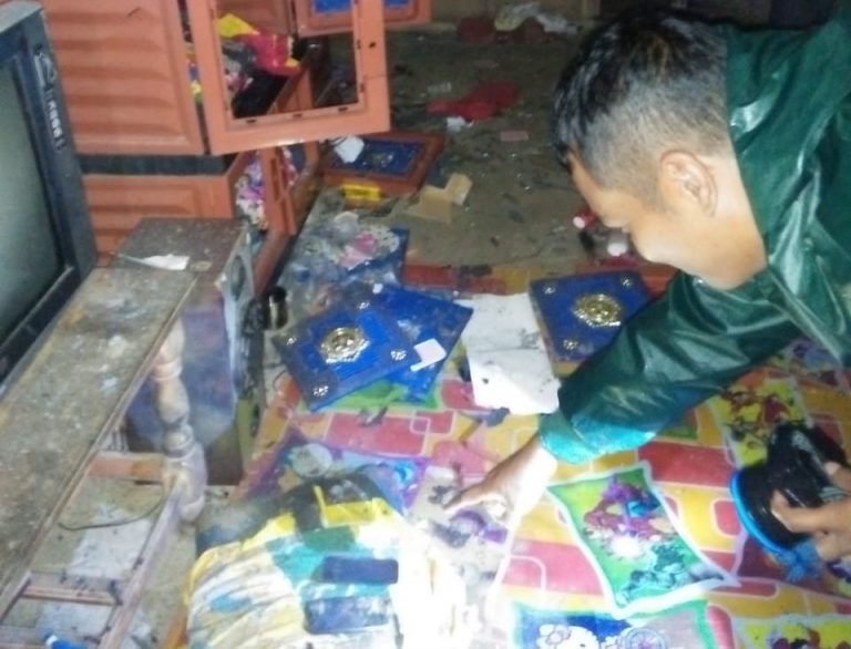 Disitulah korban tersambar petir ditambah kilitan petir ikut menyambar perabotan rumah berupa satu unit TV, lemari pakaian dan satu unit KWH listrik, sontak korban berteriak meminta tolong kepada warga sekitar.