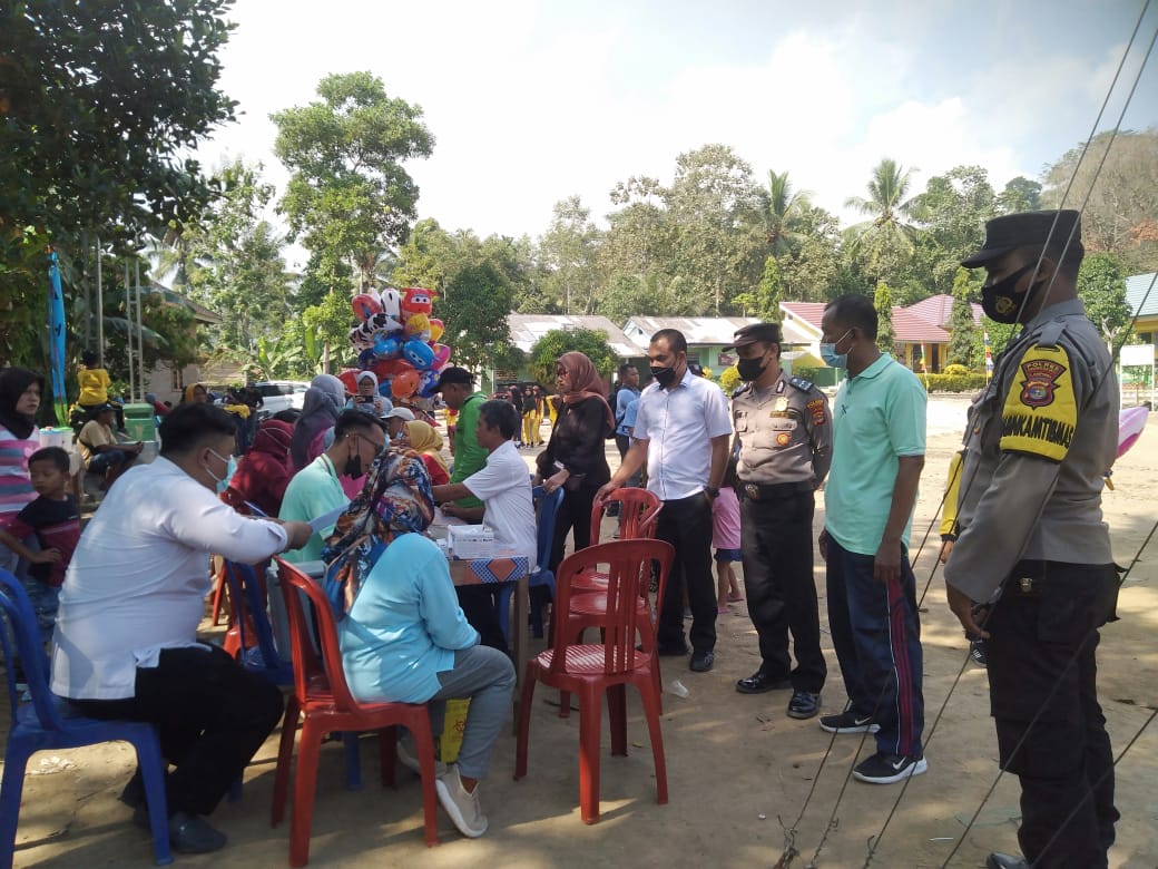 Dalam vaksinasi ini Polsek Pardasuka bekerjasama dengan tim vaksinator dari Puskesmas Pardasuka dan menargetkan 100 dosis vaksin.
