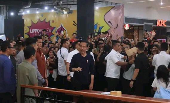 Tiba di Lippo Plaza dengan didampingi Pj Gubernur Sumsel, A Fatoni, Pj Wali Kota Lubuklinggau H Trisko Defriyansa serta sejumlah rombongan presiden disambut antusias masyarakat pengunjung Mall tersebut.