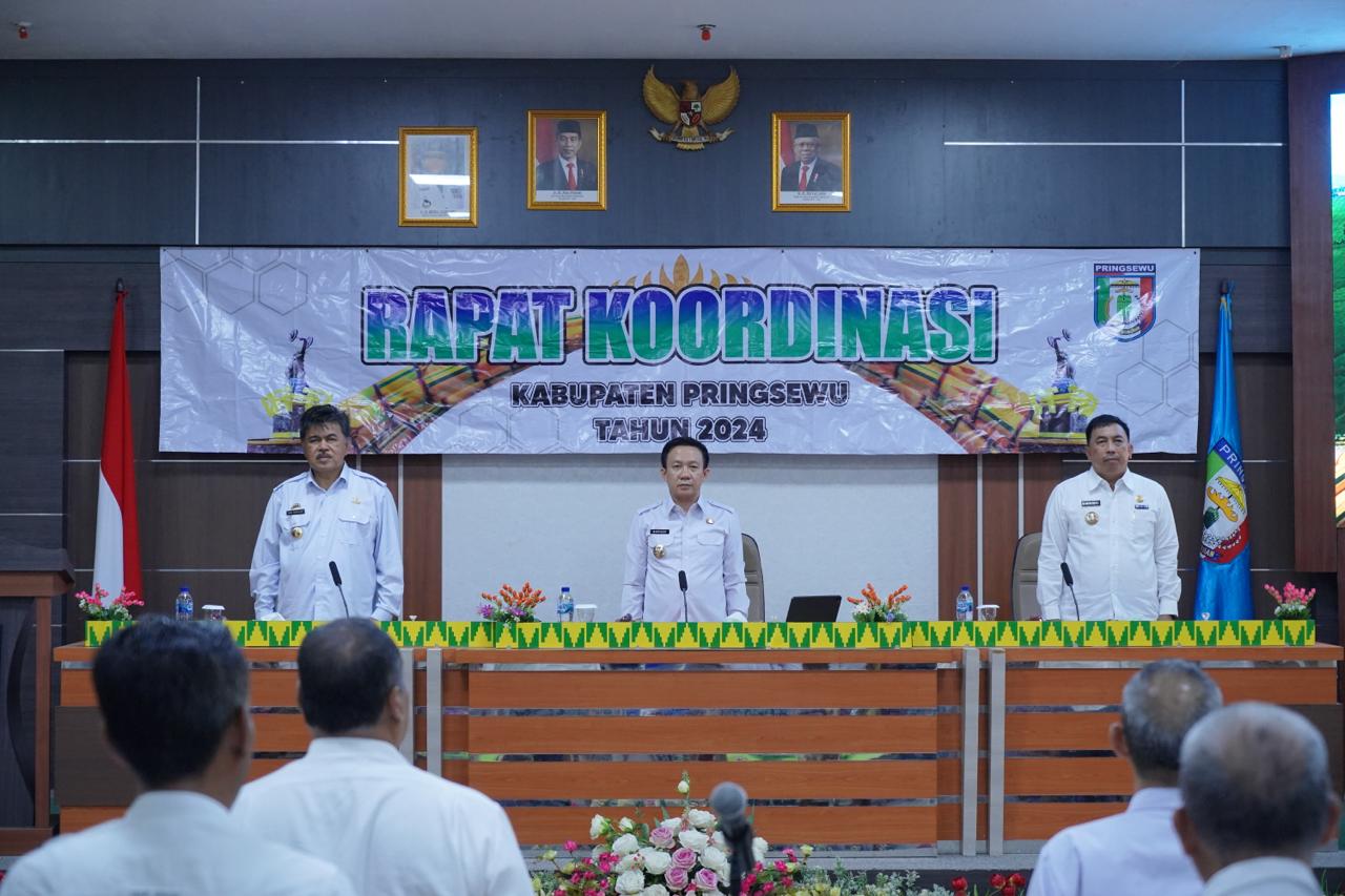 Pringsewu, Penacakrawala.com – Rapat Koordinasi (Rakor) bulanan Pemkab Pringsewu untuk bulan Maret 2024 secara resmi dibuka oleh Pj.Bupati Pringsewu Dr.Marindo Kurniawan, S.T., M.M. di Aula Utama Pemkab setempat, Rabu (6/3/2024).
