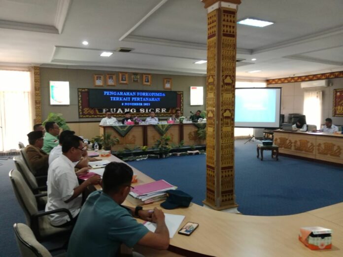 Dalam rapat pengarahan Forkopimda terkait pertanahan di Ruang Siger, yang dihadiri Wakil Bupati, Ardian Saputra, Anggota DPRD, Polres Lampung Utara, Kimal dan Perwakilan Masyarakat Adat Desa Panagan Ratu, Kecamatan Abung Timur, Rabu (08/11/2023).