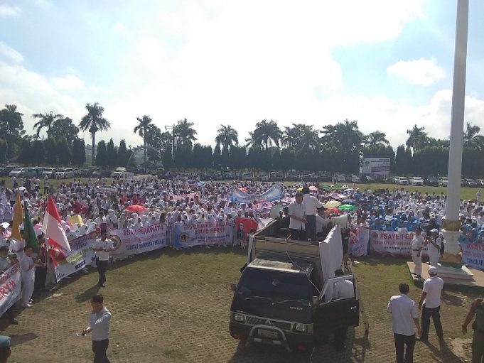 “Benar memang ada ribuan yang hadir disini, tapi mereka adalah perawat yang jadwal kerjanya sore dan malam, yang dapat shift pagi tidak kami perbolehkan hadir. Kami tidak akan mengabaikan tugas utama kami yaitu memberikan pelayanan kesehatan pada masyarakat,” tegas Sapri.