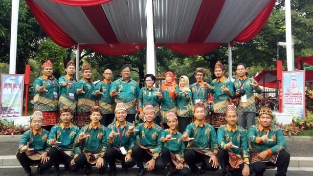 Sanggar Seni Teluk Stabas mewakili team ilustrasi musik tradisional Lampung yang menampilkan permainan musik dan lagu tradisional Lampung sebelum upacara kenegaraan berlangsung.