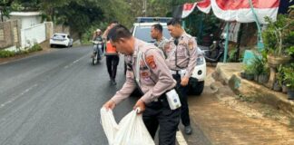 Polisi Bandar Lampung Bersihkan Tumpahan Minyak Di Jalan